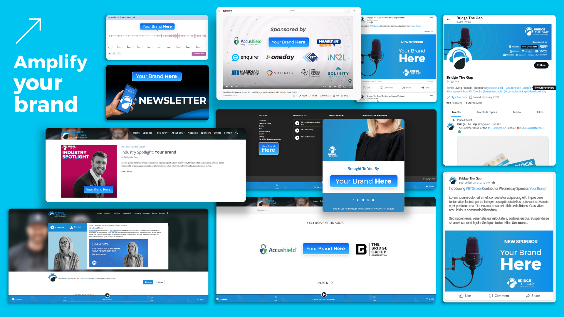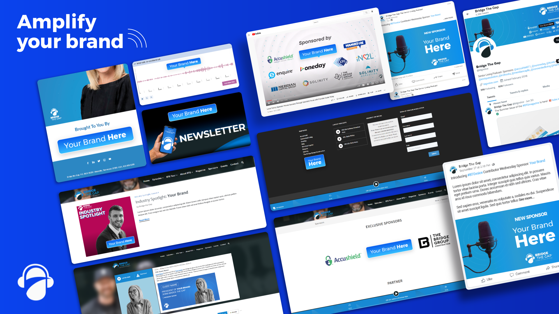 Bridge The Gap is the senior living industry's leading podcast network and media brand, built around a simple but powerful mission: inform, educate, and influence. We didn't just work with BTG. We were there before episode one, helping to build the entire operation from the ground up. The brand, the website, the content systems, the event production. All of it started with us as the creative engine behind the scenes.