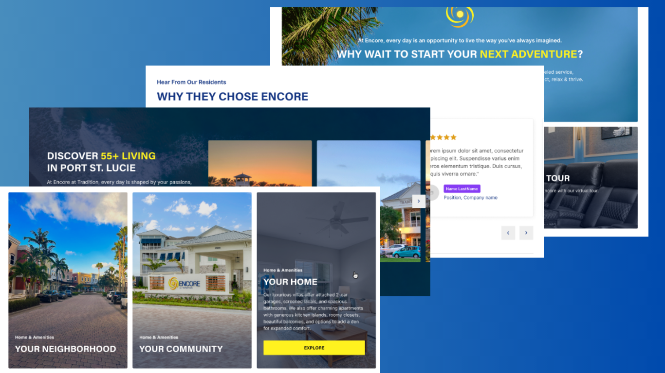 Encore at Tradition is a premier 55+ community in Port St. Lucie, Florida, offering resort-style living for active adults who are ready to embrace the next chapter on their own terms. When Grit & Gravel came on as their full marketing partner, the goal was clear: build a marketing engine that could match the energy and ambition of the community itself, and attract residents who were genuinely excited about the life waiting for them inside.