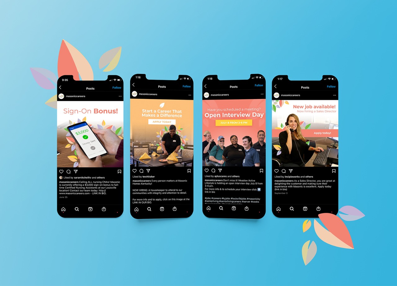 The result was a cohesive, multi-channel workforce marketing push that treated recruitment the same way great brands treat consumer marketing: with strategy, creative intention, and consistent execution across every touchpoint. For Masonic Homes, it meant a stronger pipeline of candidates who showed up already understanding and believing in the mission.